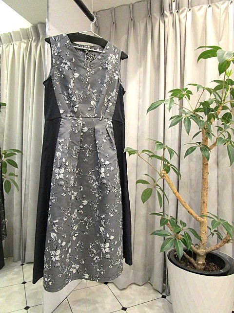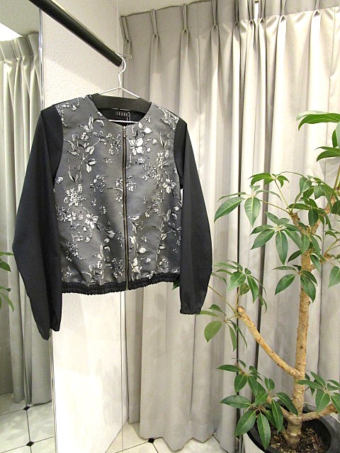 ジャガードの花柄が立体的で、 ハリのあるポリエステル素材はシワになりにくく透けません。 寒い時期はハイネックのインナーを合わせたり、 GW辺りからは1枚でサマになるワンピース! 短め丈のジャケットは万能ですし、 Aラインスカートは拡がり過ぎずカジュアルからお出かけまで~ グレーの綿素材レイヤードトップスと合わせてもOKです。