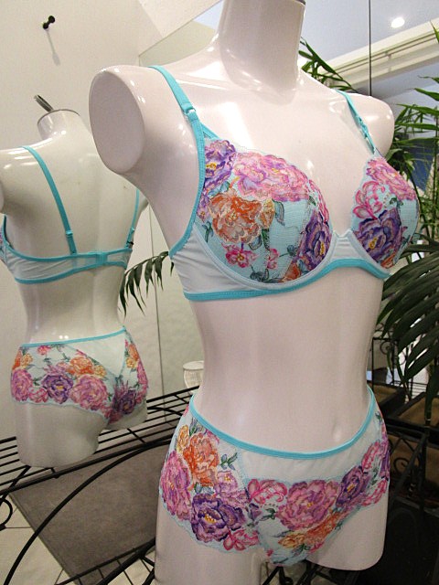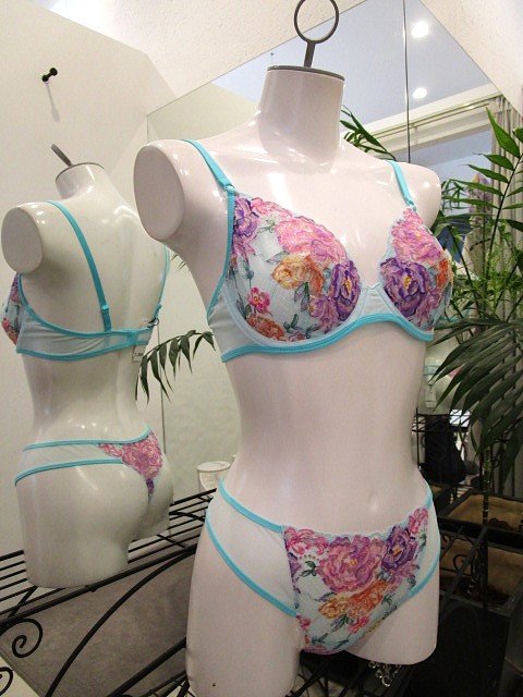 ターコイズに大胆で明るい花柄のレースが際立つコレクションです。 ここまで振り切ってくれたらもう~~逆に誰もがチェレンジしたくなる? 春ですから気分変えてみませんか!?