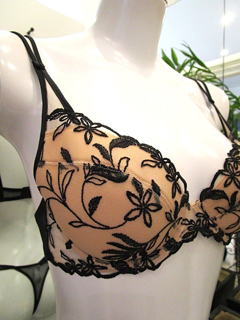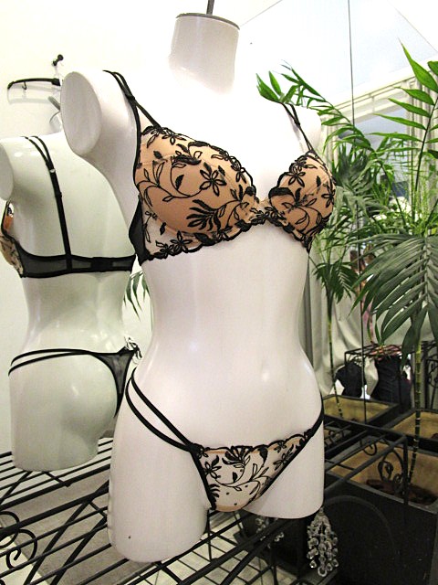 「SHAY」の新色ブラック肌にペイントをしたように見える美しい刺繍レースです。