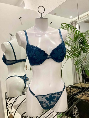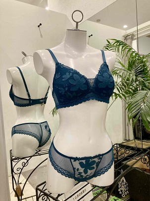 花のモチーフが肌に浮かぶように散りばめられた可愛らしいコレクションです。 青みがかったグリーンも肌に映えて綺麗です。 秋からのランジェリー選びはカラーの制約も無く自由に楽しめますよね! このカラーおススメです。